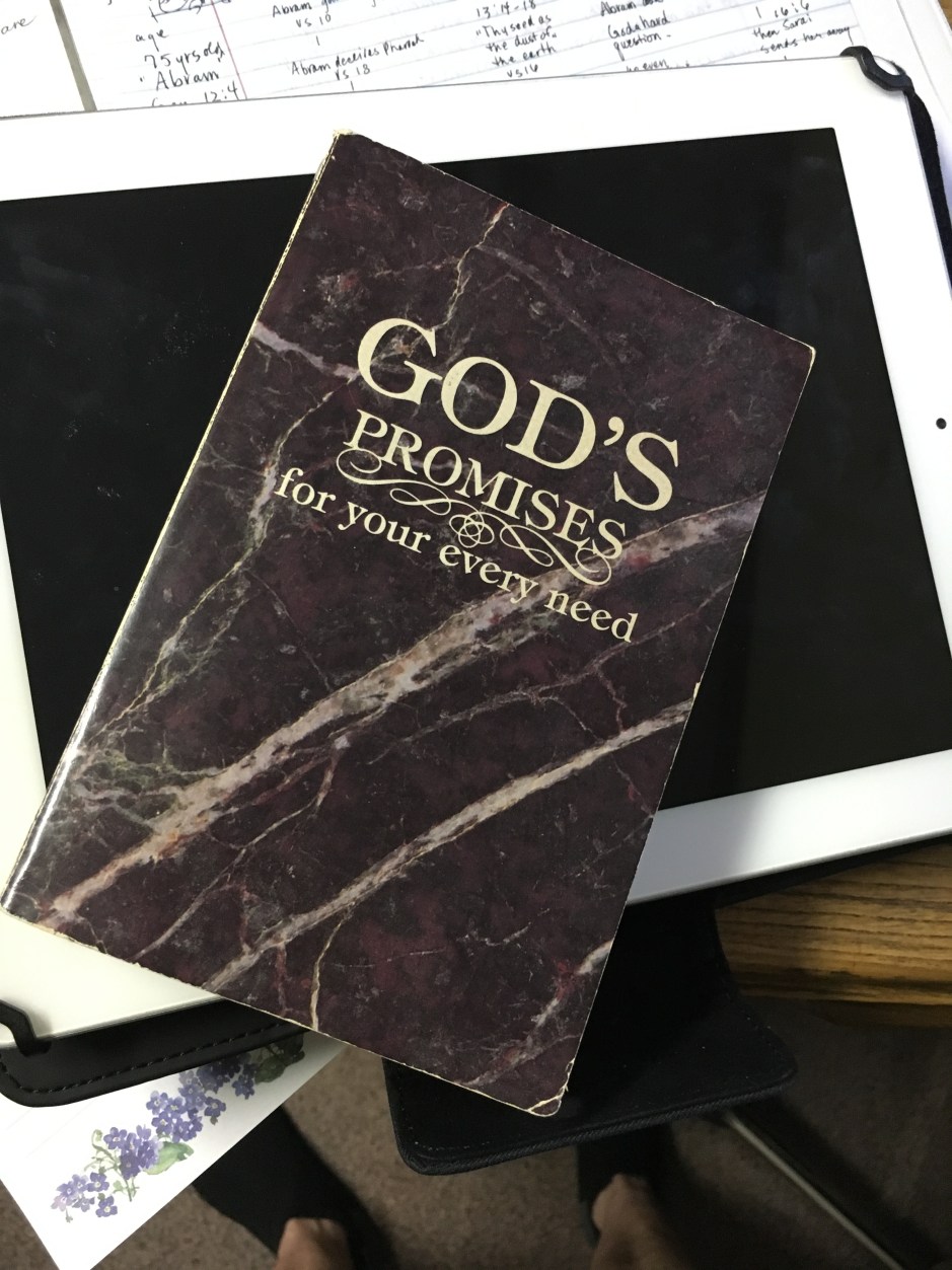 Nearly all of us good Christian girls have a copy of “The Book of Bible Promises.” Maybe it was a graduation gift or a “prayer partner” gift from a friend at church. In the front of the book it lists different issues you might be praying about matched up with scripture that addresses the promise of the answer. I’ve used it to encourage others that are dealing with difficult circumstances. Slapped a verse on a “Thinking of You” card in the hope that it takes away their pain like a magic pill.